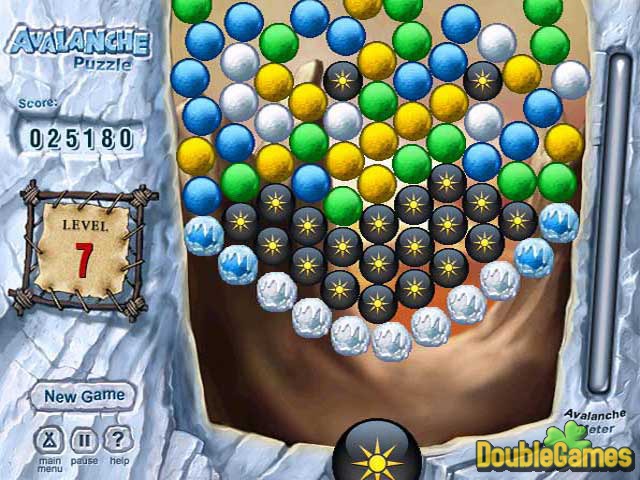 Patrzą poza! Gigantyczny snowballs padają na dół szybszy niż wy możecie mówić brrr! Jedyna droga utrzymywać przed dostaniem się pogłębianym w lawinie jest łączyć czarne kule i otwierają tunel. I, jedyna droga łączyć czarne kule jest pozbawiać się całego snowballs w drodze . Nie przepuszczają Lawiny...