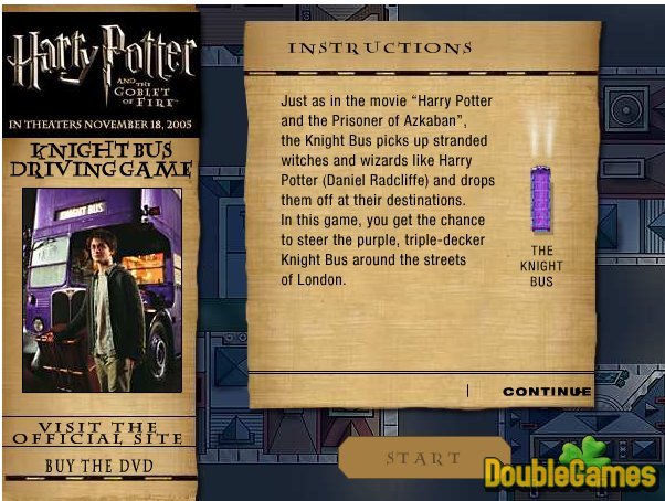 Cała fabuła z filmu pt. Harry Potter and the Prisoner of Azkaban została idealnie oddana w nowej, wyścigowej grze online pt. Harry Potter: Knight Bus Driving. Czy posiadasz prawo jazdy? Jeżeli nie, to nadszedł najwyższy czas abyś je sobie wyrobił, ponieważ tym razem dane Ci będzie prowadzenie magicznego trzy- piętrowca! Twoje zadanie będzie tu polegało na poprowadzeniu samego Błędnego Rycerza w celu odbierania pasażerów , którzy stanowią reprezentację innego świata. Zostaniesz powiadomiony o celu ich podrózy, do którego będziesz musiał ich dostarczyć. Podążaj za zielonymi strzałkami aby odebrać potencjalnych pasażerów. Pamiętaj jednak, że musisz się pospieszyć, ponieważ masz jedynie 30 sekund na odebranie każdego a nich. Postaraj się omijać budynki tak, aby Twój autobus nie uległ zniszczeniu.! Zacznij grać w Harry Potter: Knight Bus Driving online i przećwicz swoje umiejętności jako kierowca!