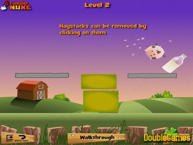 MooO jest zabawny fizyki oparte puzzle gry. Głównym bohaterem tej gry flash online jest tłuszczu krowy rundy. Twoim celem jest, aby uderzyć butelką mleka krowy. Użyj lewej i prawej strzałki do rolki krowy. Trzeba usunąć Stogi i różne bloki lub ściany przez kliknięcie na nich. Im szybciej rozwiązać zadanie, tym więcej punktów otrzymasz. Nie pozwól, aby krowy, toczą się na ekranie. Musisz się dowiedzieć z logiki na pięćdziesiąt zabawne poziomy. Nawet małe dzieci mogą grać to puzzle gra zręcznościowa. Przetoczyć do przodu!