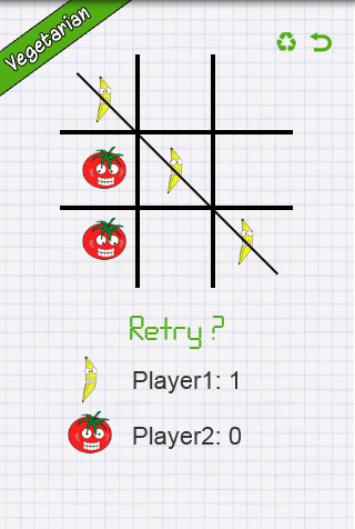 Ciesz się nowe niesamowite i bardzo zabawne skrętu gry tic-tac-toe znany z wegetariańskie Tic Tac Toe, dla iOS lub Android urządzenia. Można grać z komputerem lub z przyjacielem. Można wybrać pomiędzy cztery różne postacie. Trzy zabawne poziomy są już czeka na Ciebie! Zagrabić twój zdejmowany pomysł i zacząć grać wegetariańska Tic Tac Toe, teraz i absolutnie za darmo!